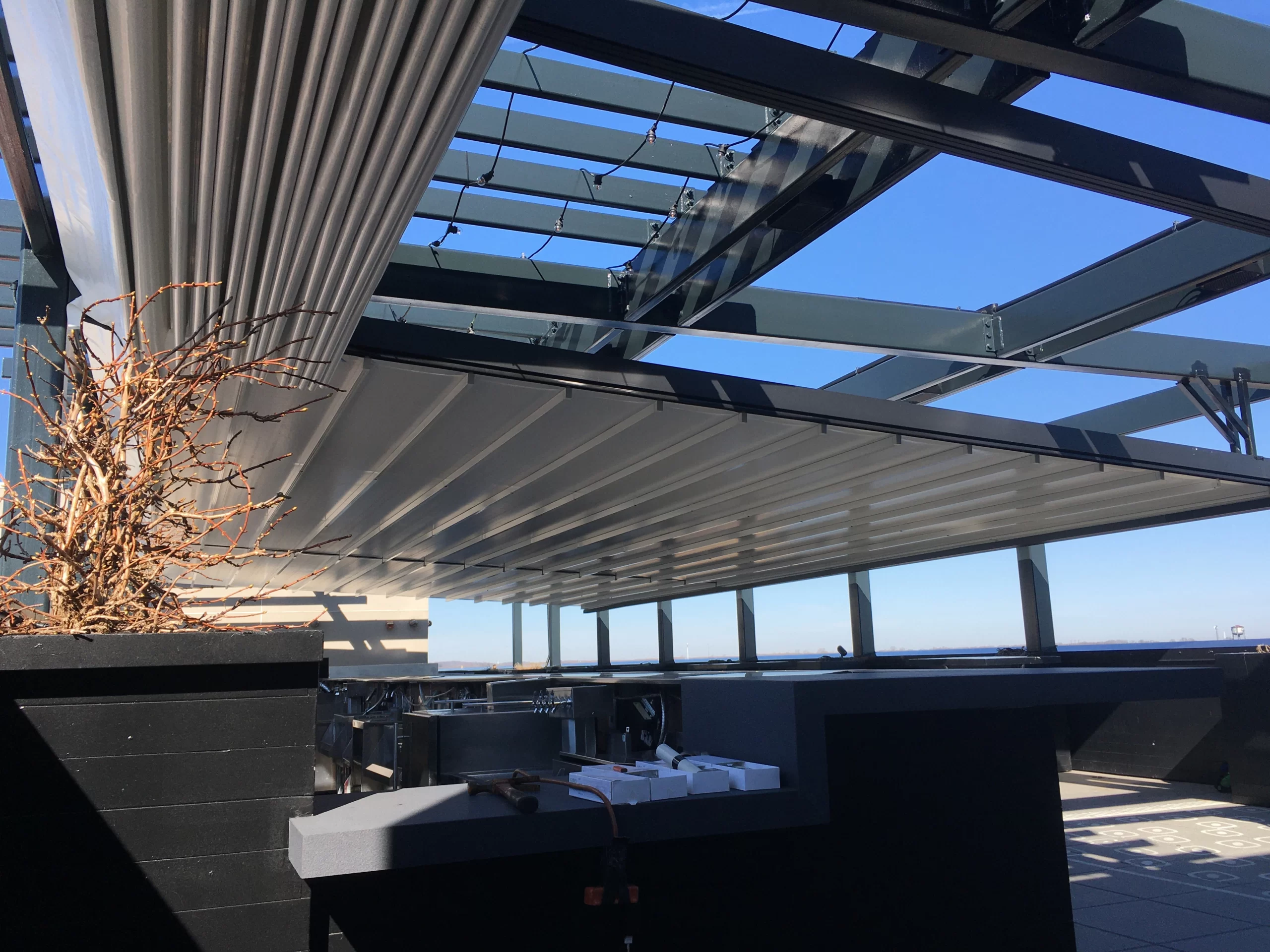 Integrated motorized controls, weather sensors, and mobile app connectivity allow effortless operation. The system can automatically open or close based on weather conditions, providing comfort, safety, and convenience. Optional integration with lighting, heating, and ventilation systems creates a complete, smart outdoor solution.